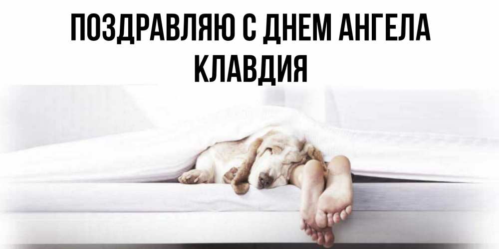 Открытка Поздравляю с днем Ангела Клавдия. Открытка спокойной ночи с собакой и ногами. кровать с собакой пожелание сладких снов и спокойной ночи