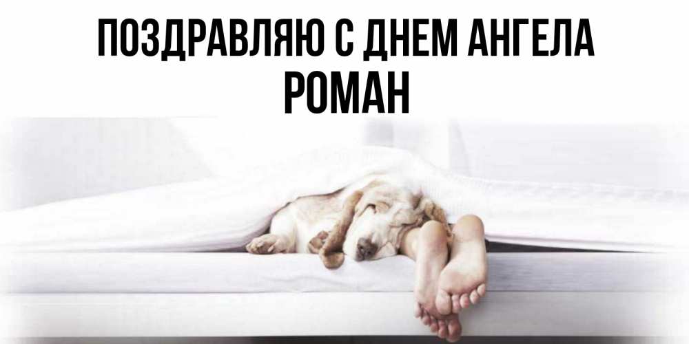 Открытка Поздравляю с днем Ангела Роман. Открытка спокойной ночи с собакой и ногами. кровать с собакой пожелание сладких снов и спокойной ночи