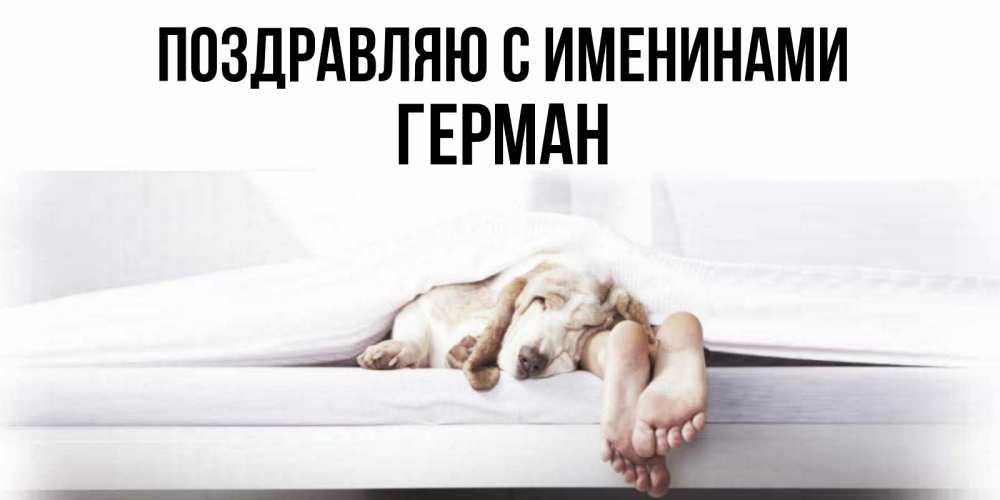 Открытка Поздравляю с именинами Герман. Открытка спокойной ночи с собакой и ногами. кровать с собакой пожелание сладких снов и спокойной ночи