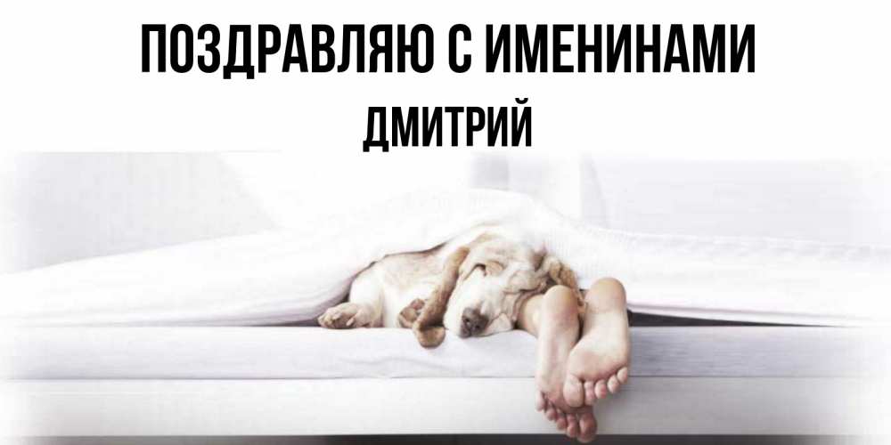 Открытка Поздравляю с именинами Дмитрий. Открытка спокойной ночи с собакой и ногами. кровать с собакой пожелание сладких снов и спокойной ночи