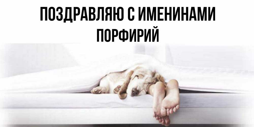 Открытка Поздравляю с именинами Порфирий. Открытка спокойной ночи с собакой и ногами. кровать с собакой пожелание сладких снов и спокойной ночи