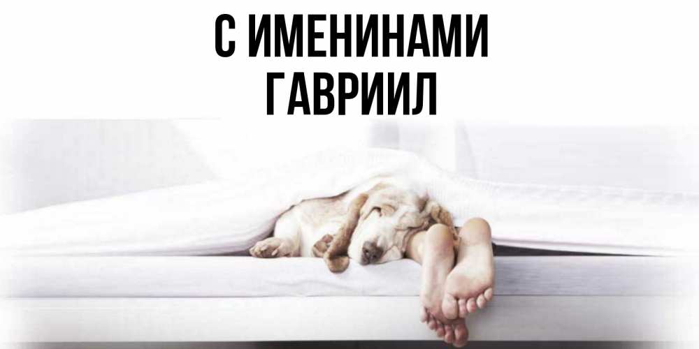 Открытка С именинами Гавриил. Открытка спокойной ночи с собакой и ногами. кровать с собакой пожелание сладких снов и спокойной ночи