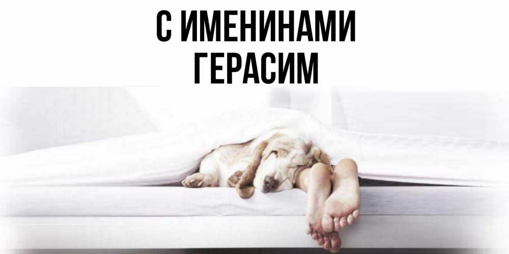 Открытка С именинами Герасим. Открытка спокойной ночи с собакой и ногами. кровать с собакой пожелание сладких снов и спокойной ночи