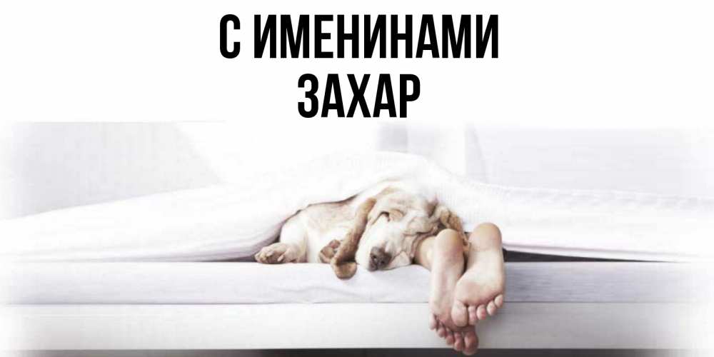 Открытка С именинами Захар. Открытка спокойной ночи с собакой и ногами. кровать с собакой пожелание сладких снов и спокойной ночи