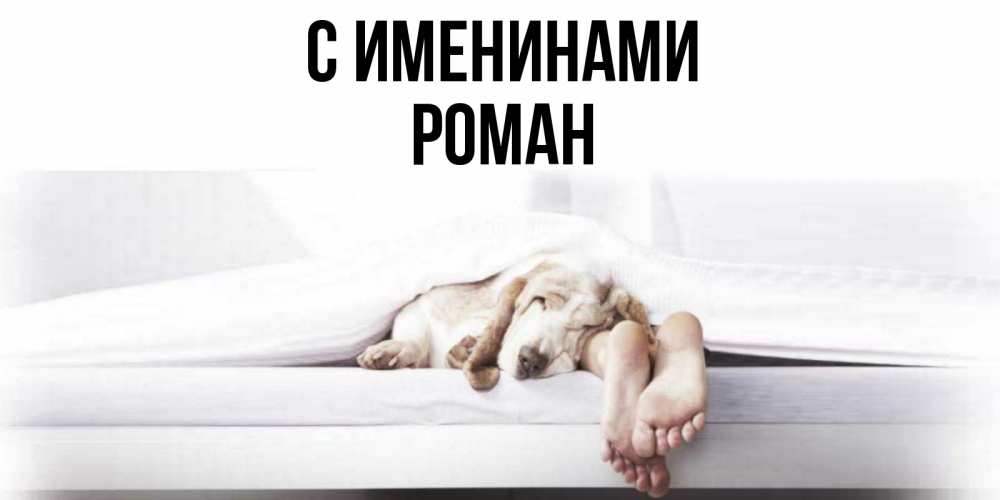 Открытка С именинами Роман. Открытка спокойной ночи с собакой и ногами. кровать с собакой пожелание сладких снов и спокойной ночи