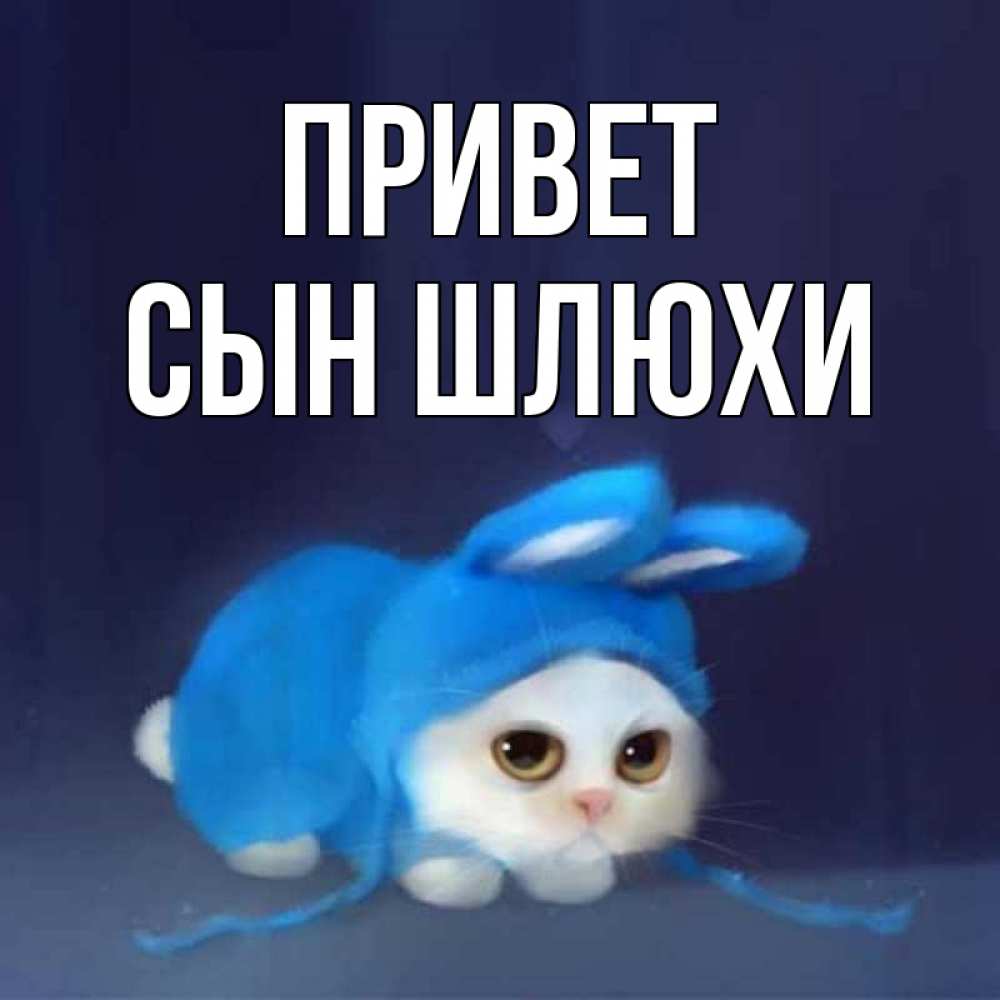 Открытка Привет Сын шлюхи. Кот в костюме зайца желает споки ноки. кот в голубом костюме кролика с ушками
