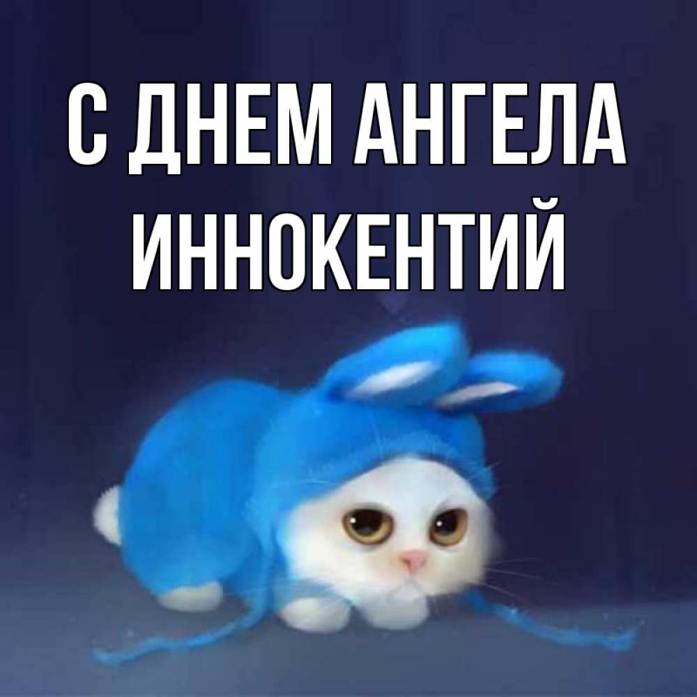 Открытка С днем Ангела Иннокентий. Кот в костюме зайца желает споки ноки. кот в голубом костюме кролика с ушками