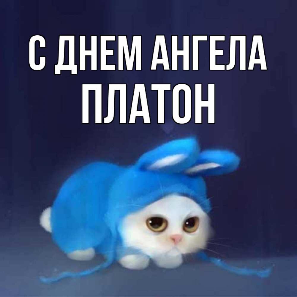 Открытка С днем Ангела Платон. Кот в костюме зайца желает споки ноки. кот в голубом костюме кролика с ушками