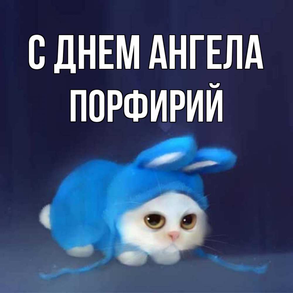 Открытка С днем Ангела Порфирий. Кот в костюме зайца желает споки ноки. кот в голубом костюме кролика с ушками