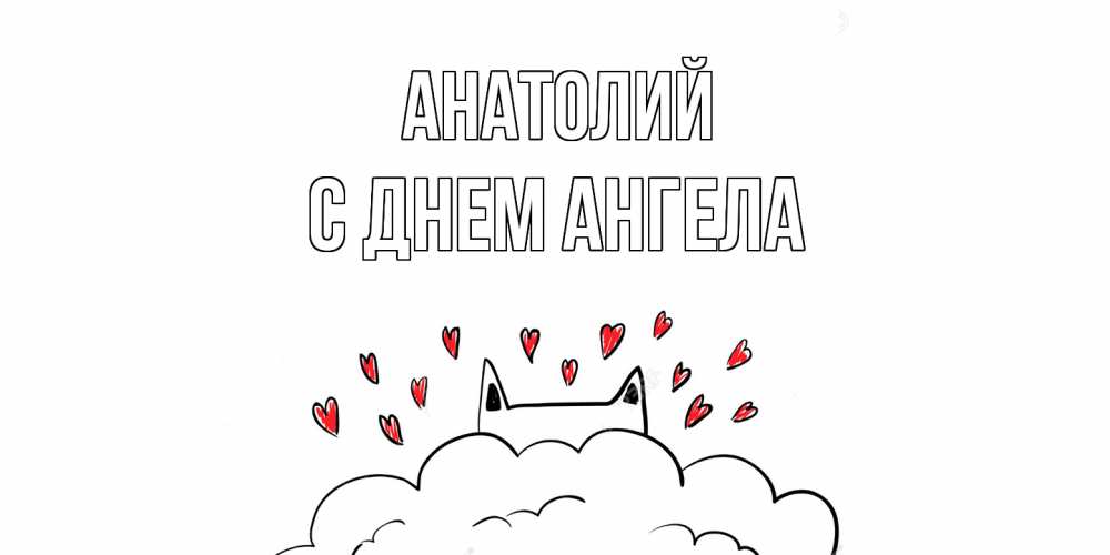 Открытка Анатолий С днем ангела. кот скучает с любовью. котик скучает по тебе очень с сердечками