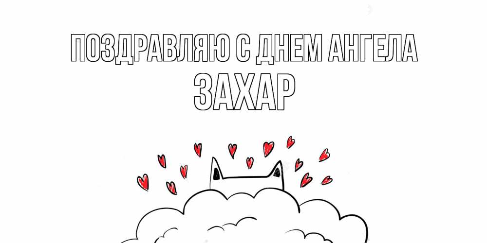 Открытка Поздравляю с днем Ангела Захар. кот скучает с любовью. котик скучает по тебе очень с сердечками