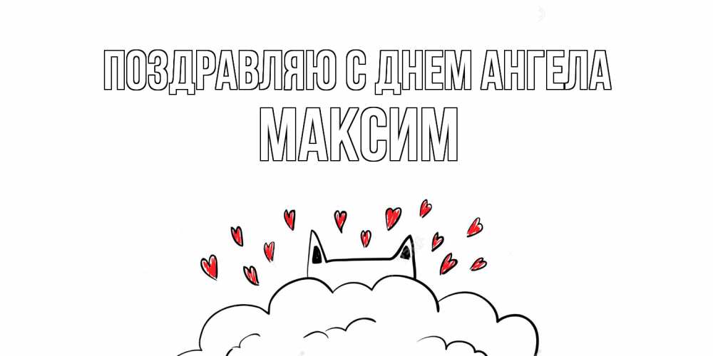 Открытка Поздравляю с днем Ангела Максим. кот скучает с любовью. котик скучает по тебе очень с сердечками