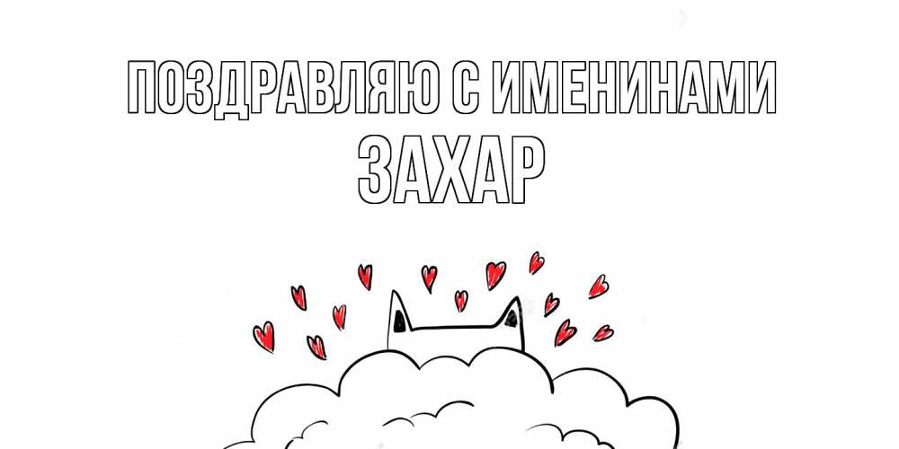 Открытка Поздравляю с именинами Захар. кот скучает с любовью. котик скучает по тебе очень с сердечками
