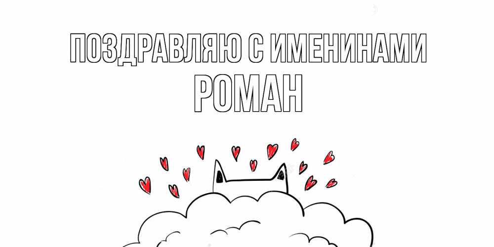 Открытка Поздравляю с именинами Роман. кот скучает с любовью. котик скучает по тебе очень с сердечками