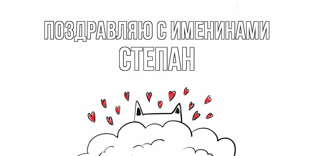 Открытка Поздравляю с именинами Степан. кот скучает с любовью. котик скучает по тебе очень с сердечками