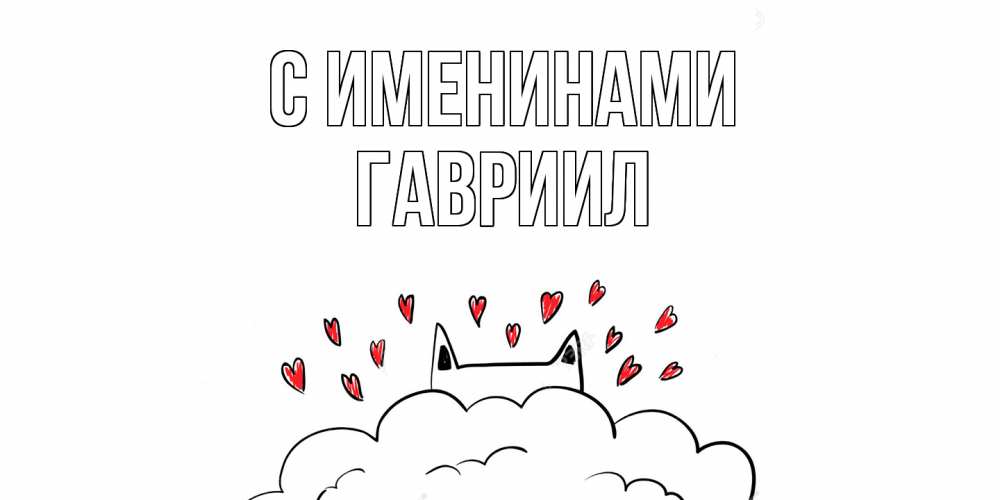 Открытка С именинами Гавриил. кот скучает с любовью. котик скучает по тебе очень с сердечками
