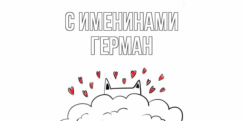 Открытка С именинами Герман. кот скучает с любовью. котик скучает по тебе очень с сердечками