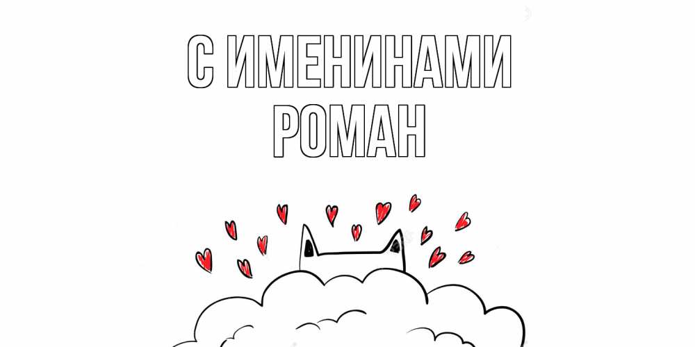 Открытка С именинами Роман. кот скучает с любовью. котик скучает по тебе очень с сердечками