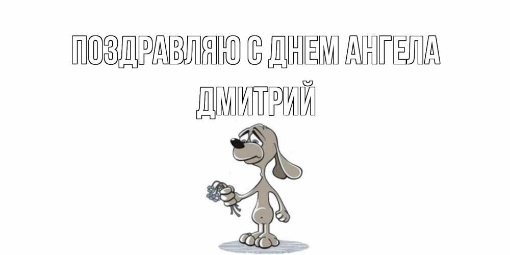 Открытка Поздравляю с днем Ангела Дмитрий. песик скучает и дарит цветы. я по тебе скучаю с песиком