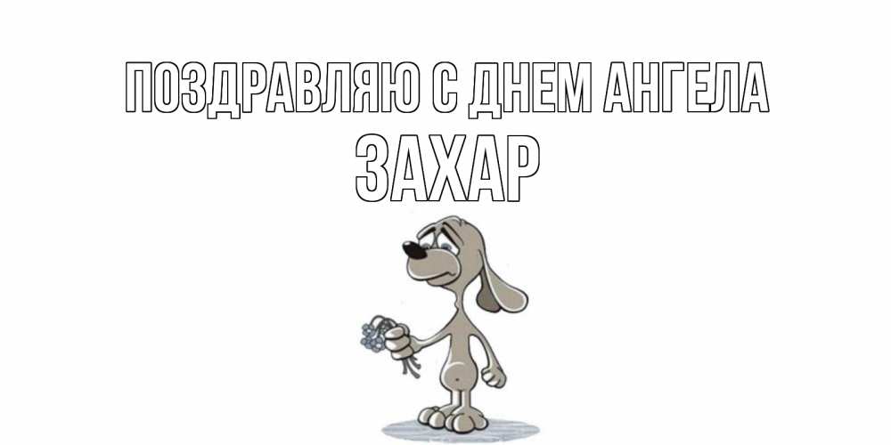 Открытка Поздравляю с днем Ангела Захар. песик скучает и дарит цветы. я по тебе скучаю с песиком