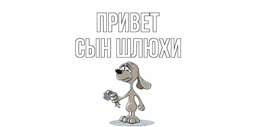 Открытка Привет Сын шлюхи. песик скучает и дарит цветы. я по тебе скучаю с песиком