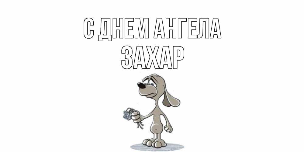Открытка С днем Ангела Захар. песик скучает и дарит цветы. я по тебе скучаю с песиком