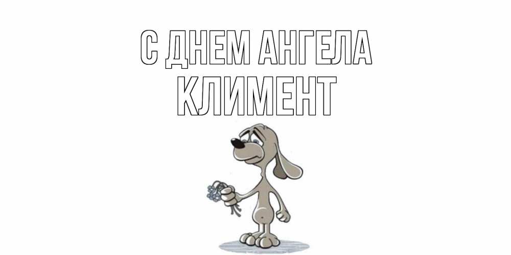Открытка С днем Ангела Климент. песик скучает и дарит цветы. я по тебе скучаю с песиком