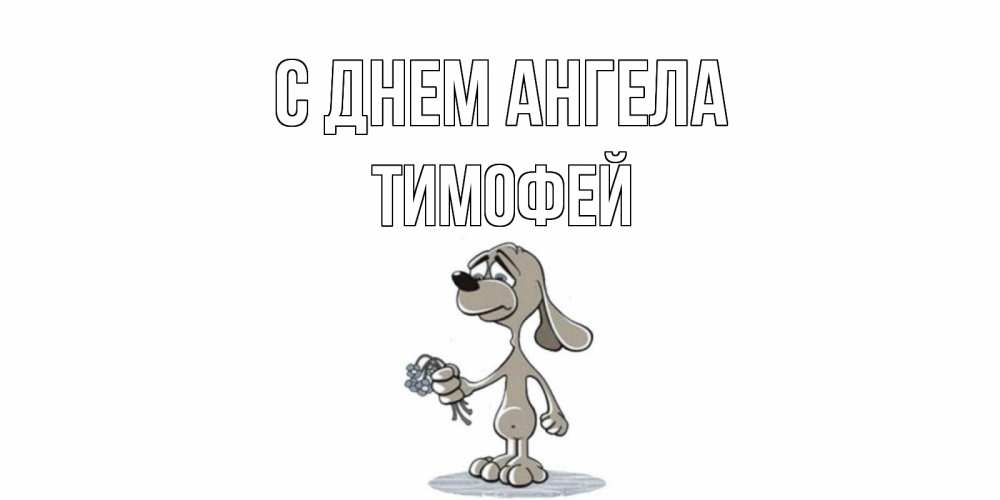 Открытка С днем Ангела Тимофей. песик скучает и дарит цветы. я по тебе скучаю с песиком