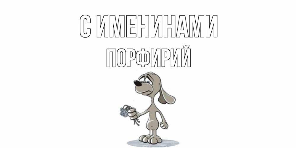 Открытка С именинами Порфирий. песик скучает и дарит цветы. я по тебе скучаю с песиком