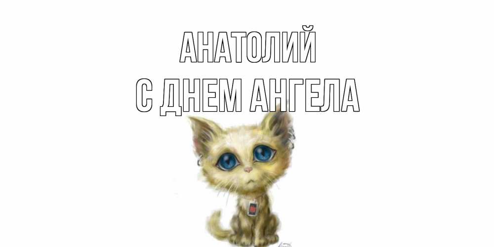 Открытка Анатолий С днем ангела. котик с голубыми глазами скучает по тебе. я по тебе скучаю открытки для любимых с именем