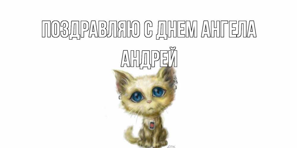 Открытка Поздравляю с днем Ангела Андрей. котик с голубыми глазами скучает по тебе. я по тебе скучаю открытки для любимых с именем