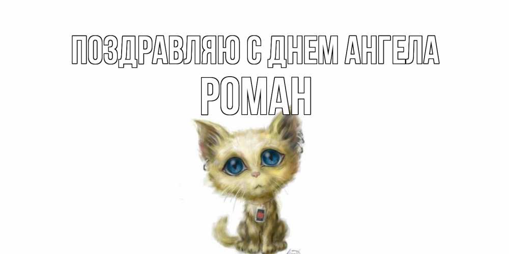 Открытка Поздравляю с днем Ангела Роман. котик с голубыми глазами скучает по тебе. я по тебе скучаю открытки для любимых с именем