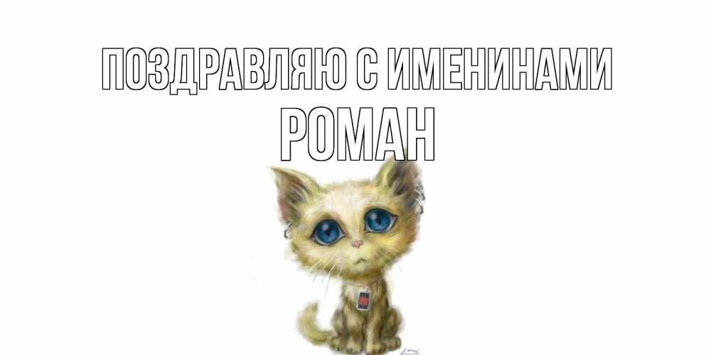 Открытка Поздравляю с именинами Роман. котик с голубыми глазами скучает по тебе. я по тебе скучаю открытки для любимых с именем