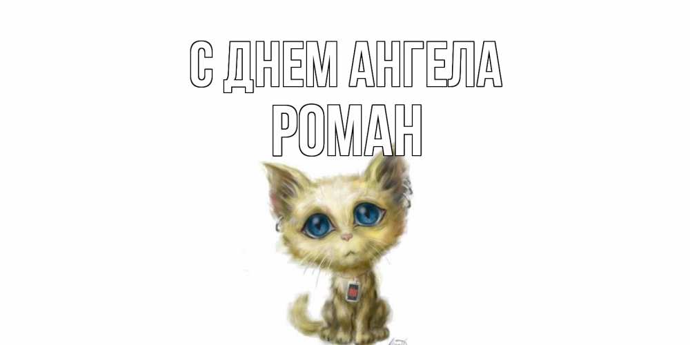 Открытка С днем Ангела Роман. котик с голубыми глазами скучает по тебе. я по тебе скучаю открытки для любимых с именем