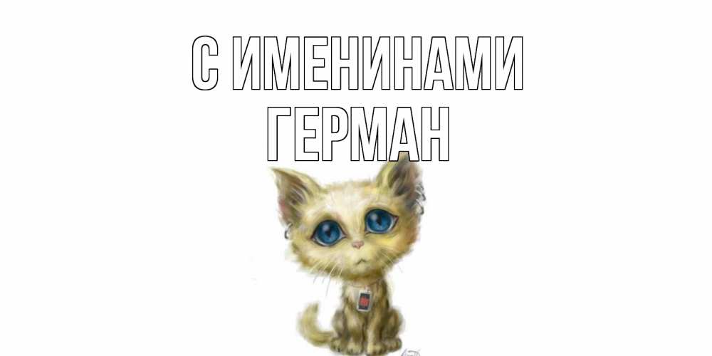 Открытка С именинами Герман. котик с голубыми глазами скучает по тебе. я по тебе скучаю открытки для любимых с именем