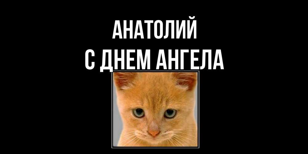 Открытка Анатолий С днем ангела. рыжий кот на черном фоне, я скучаю. открытки рыжий котенок скучает по тебе