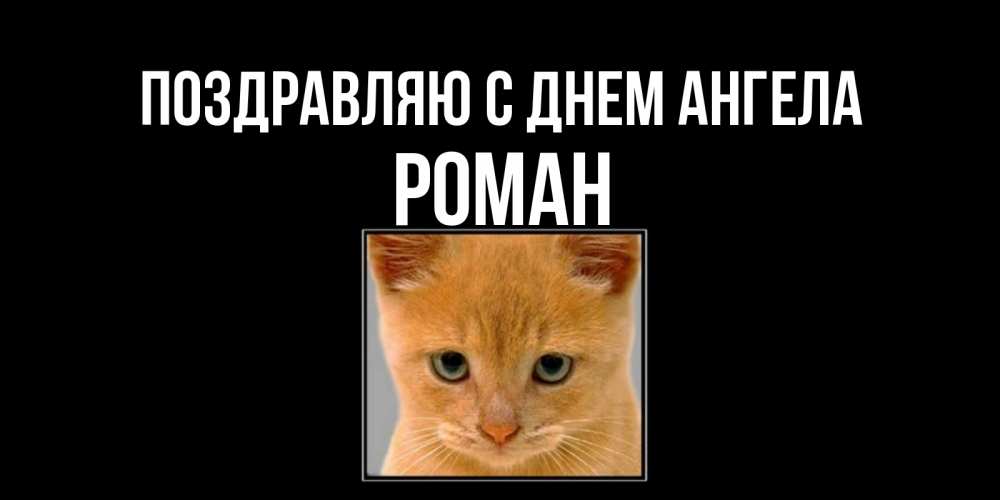 Открытка Поздравляю с днем Ангела Роман. рыжий кот на черном фоне, я скучаю. открытки рыжий котенок скучает по тебе