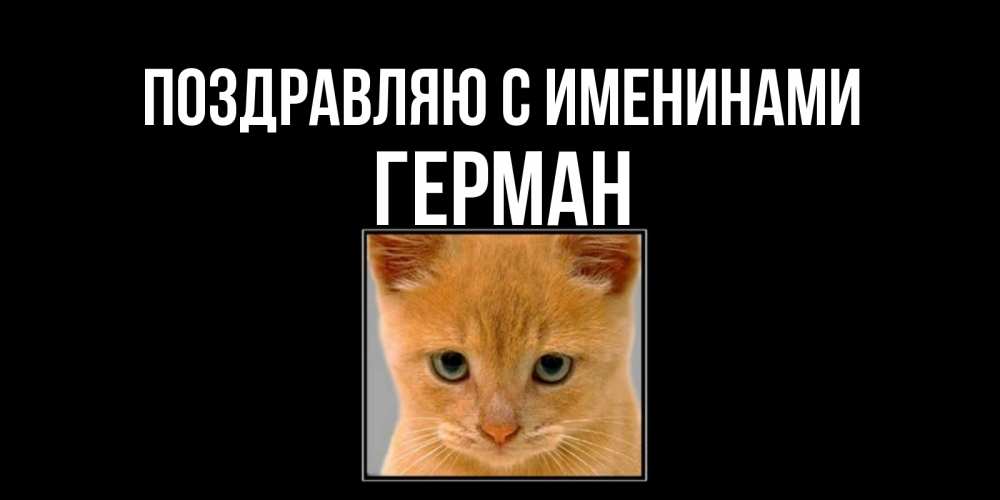 Открытка Поздравляю с именинами Герман. рыжий кот на черном фоне, я скучаю. открытки рыжий котенок скучает по тебе