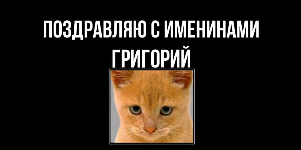 Открытка Поздравляю с именинами Григорий. рыжий кот на черном фоне, я скучаю. открытки рыжий котенок скучает по тебе