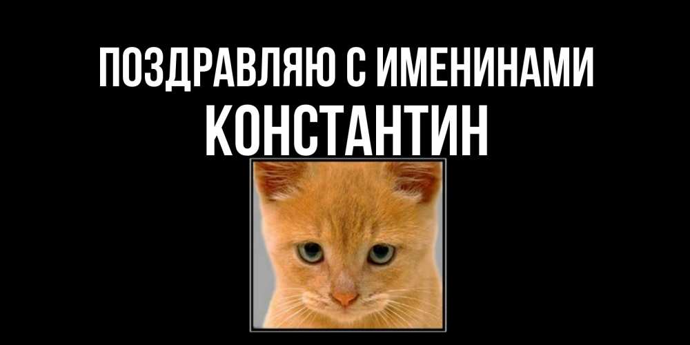 Открытка Поздравляю с именинами Константин. рыжий кот на черном фоне, я скучаю. открытки рыжий котенок скучает по тебе