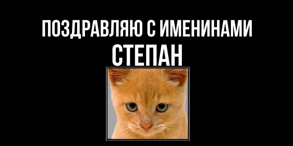 Открытка Поздравляю с именинами Степан. рыжий кот на черном фоне, я скучаю. открытки рыжий котенок скучает по тебе