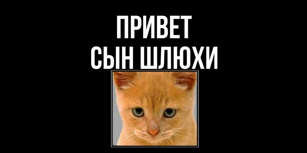 Открытка Привет Сын шлюхи. рыжий кот на черном фоне, я скучаю. открытки рыжий котенок скучает по тебе