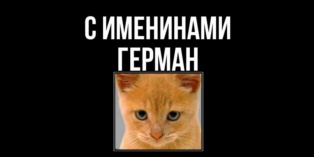 Открытка С именинами Герман. рыжий кот на черном фоне, я скучаю. открытки рыжий котенок скучает по тебе