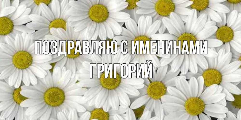 Открытка Поздравляю с именинами Григорий. много ромашек и пожелание хорошего дня. поляна ромашек