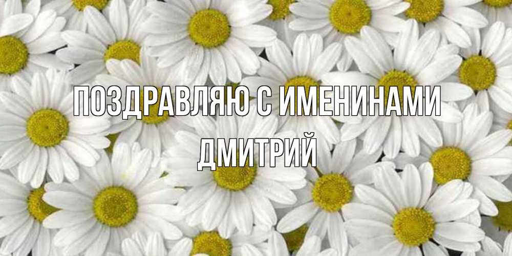 Открытка Поздравляю с именинами Дмитрий. много ромашек и пожелание хорошего дня. поляна ромашек