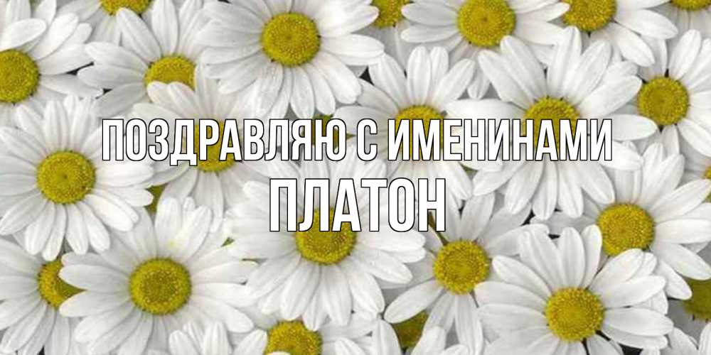 Открытка Поздравляю с именинами Платон. много ромашек и пожелание хорошего дня. поляна ромашек