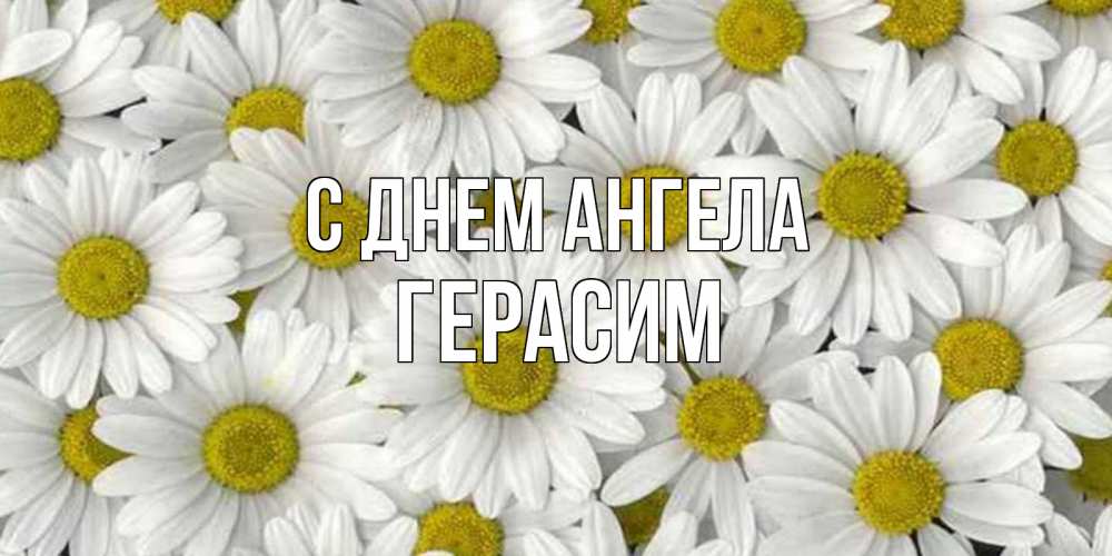 Открытка С днем Ангела Герасим. много ромашек и пожелание хорошего дня. поляна ромашек