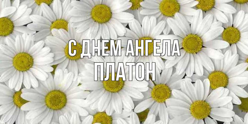 Открытка С днем Ангела Платон. много ромашек и пожелание хорошего дня. поляна ромашек