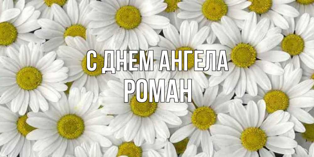 Открытка С днем Ангела Роман. много ромашек и пожелание хорошего дня. поляна ромашек