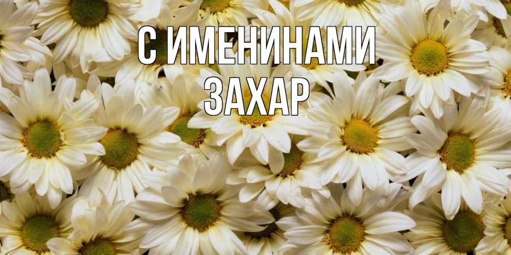 Открытка С именинами Захар. красивые цветы крупные ромашки. крупные ромашки